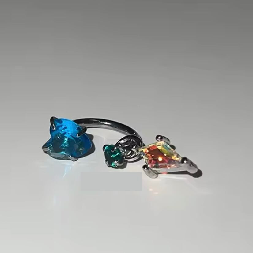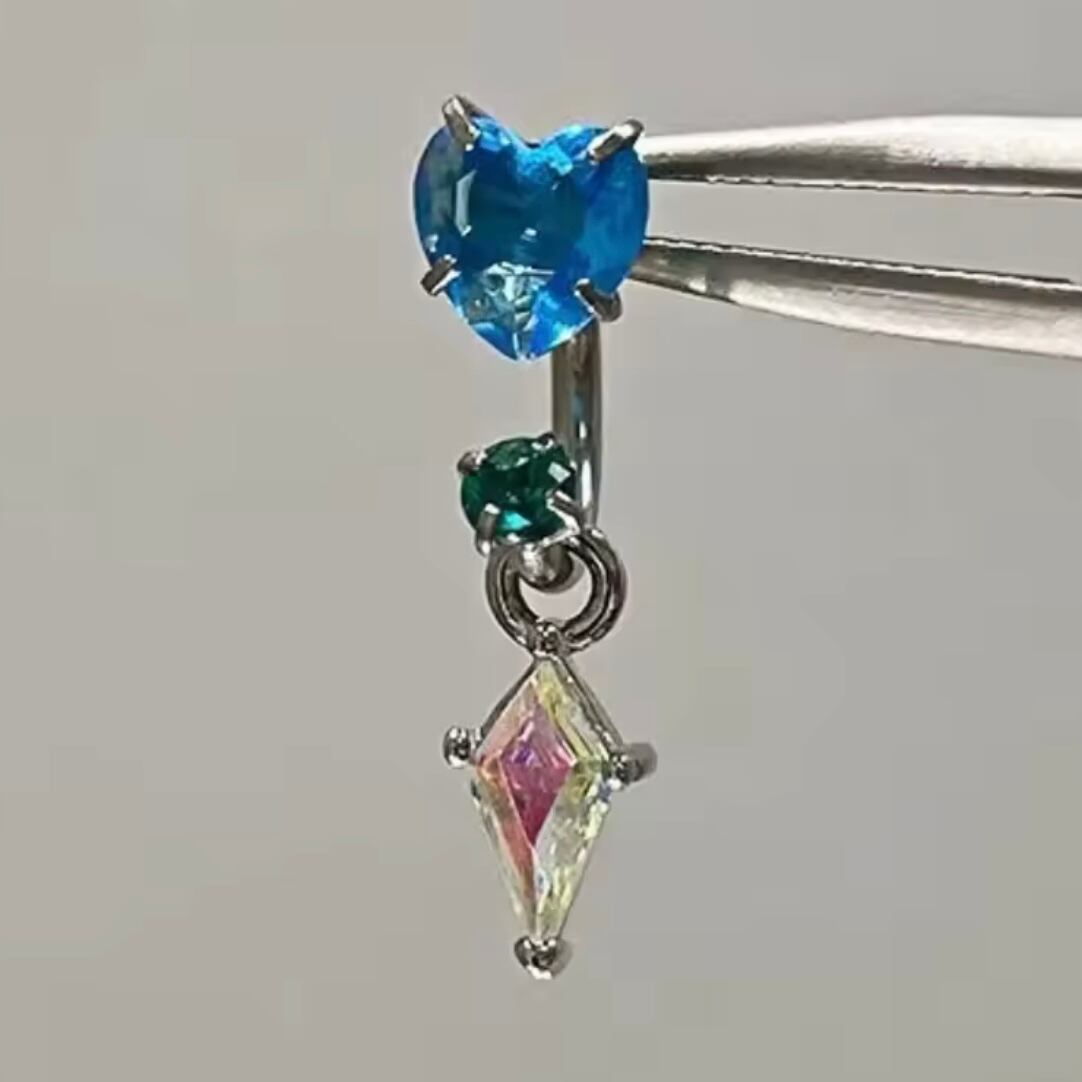267:ボディピアス サーキュラーバーベル ハート ブルー グリーン オーロラ チャーム 2way かわいい きらきら フープピアス リングピアス ピアス ゆらゆら 揺れるピアス
