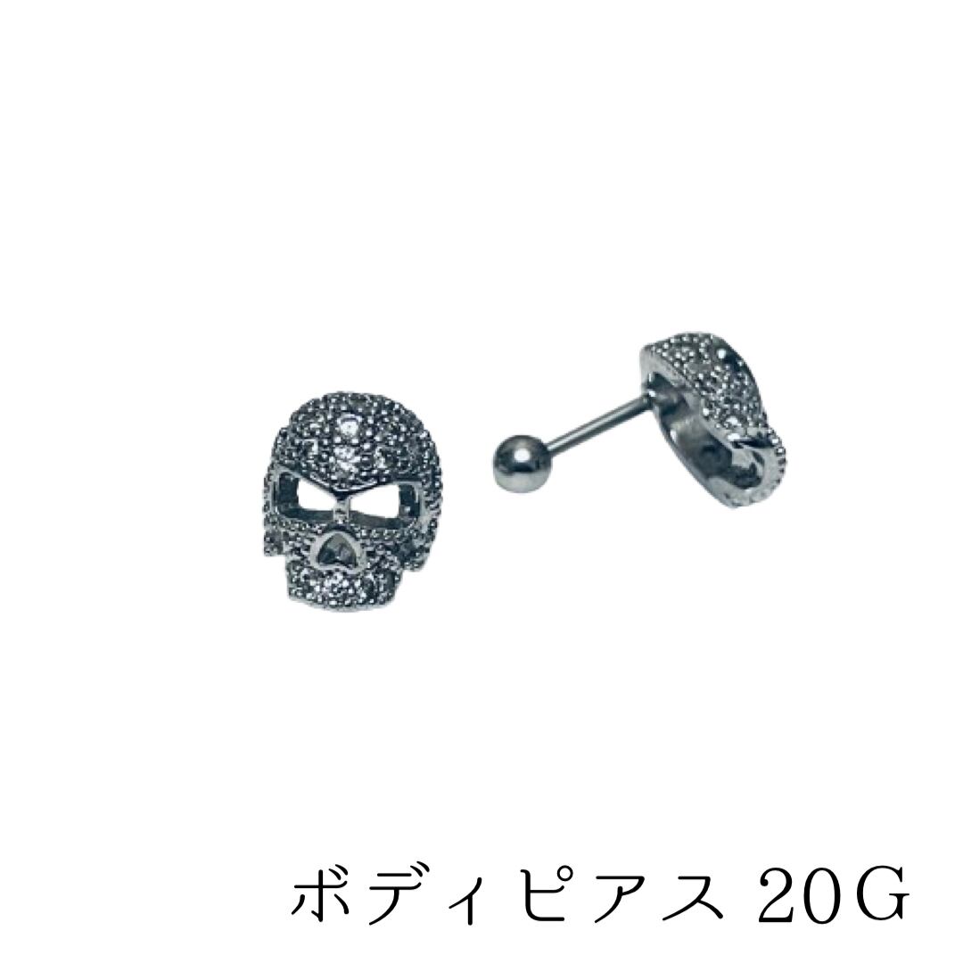 29:ボディピアス 20G ピアス ドクロ スカル ガイコツ 顔 ジルコン ストレートバーベル ストーン 軟骨 ヘリックス 耳たぶ イヤーロブ パヴェ 20G