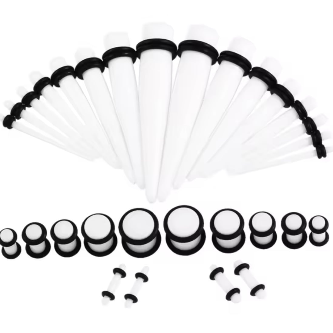 ピアス ボディピアス ボディーピアス 拡張 拡張セット バーベル 白 黒 透明 ホワイト ブラック クリア 8G 6G 4G 2G0G 00G 3mm 4mm 5mm 6mm 8mm 10mm シンプル 可愛い かっこいい パンク ゴシック ゴスロリ ロック 激安 プチプラ メンズ レディース ユニセックス 男 女 男女 pierce bodypierce accessory