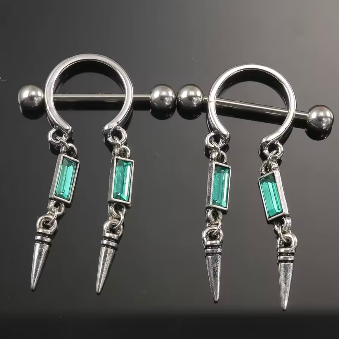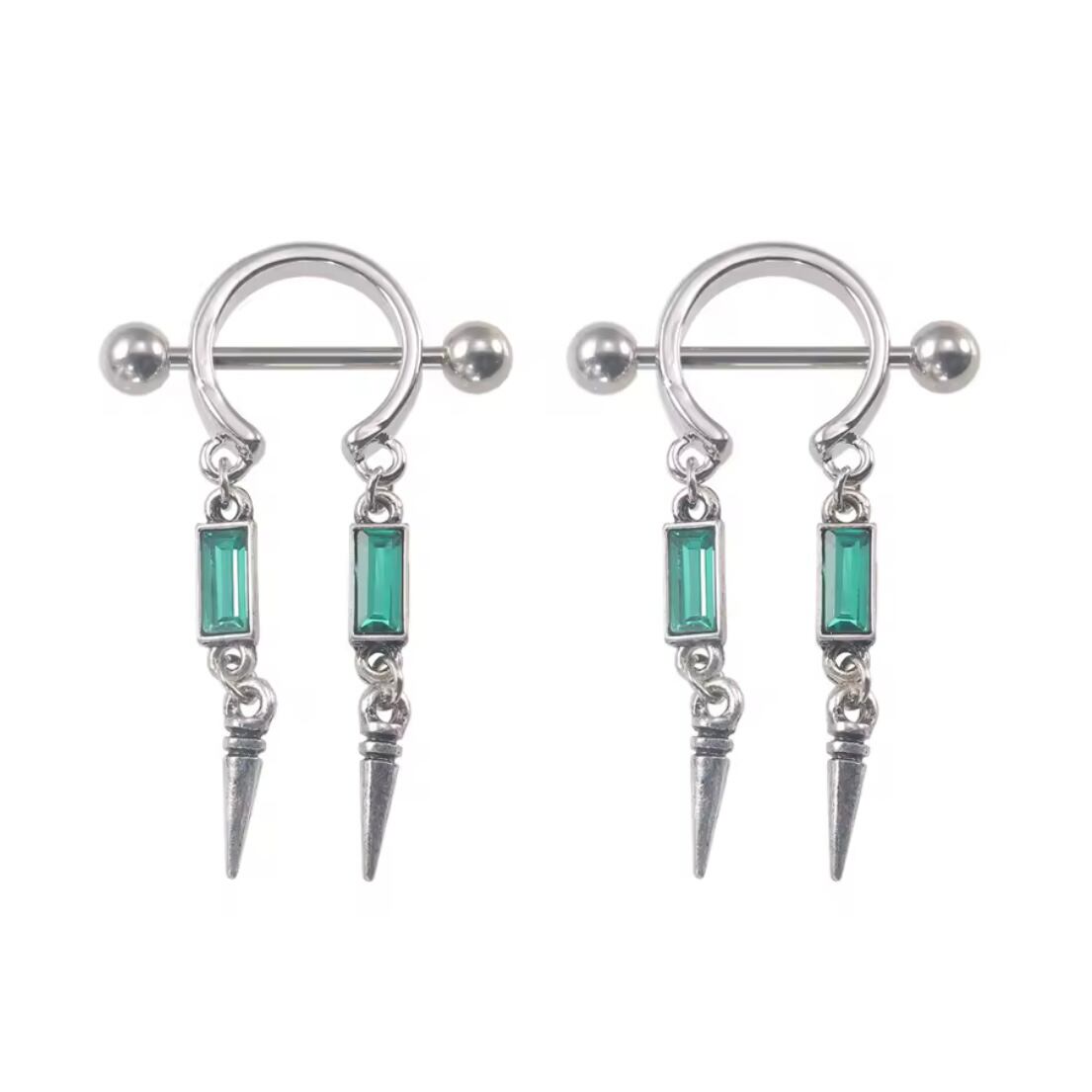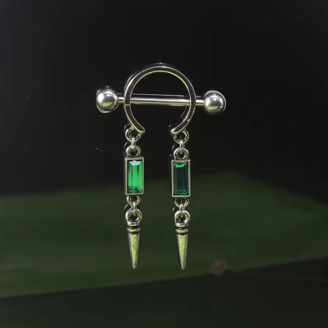 285:ニップルピアス ボディピアス 14G 14ゲージ 可愛い フェミニン セクシー 乳首ピアス ゆらゆら 揺れる ピアス 緑 グリーン 可愛い
