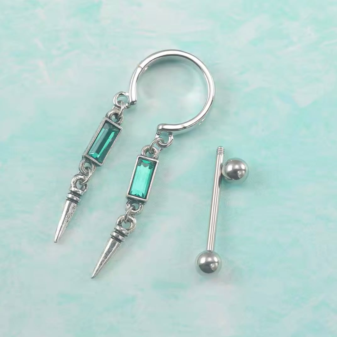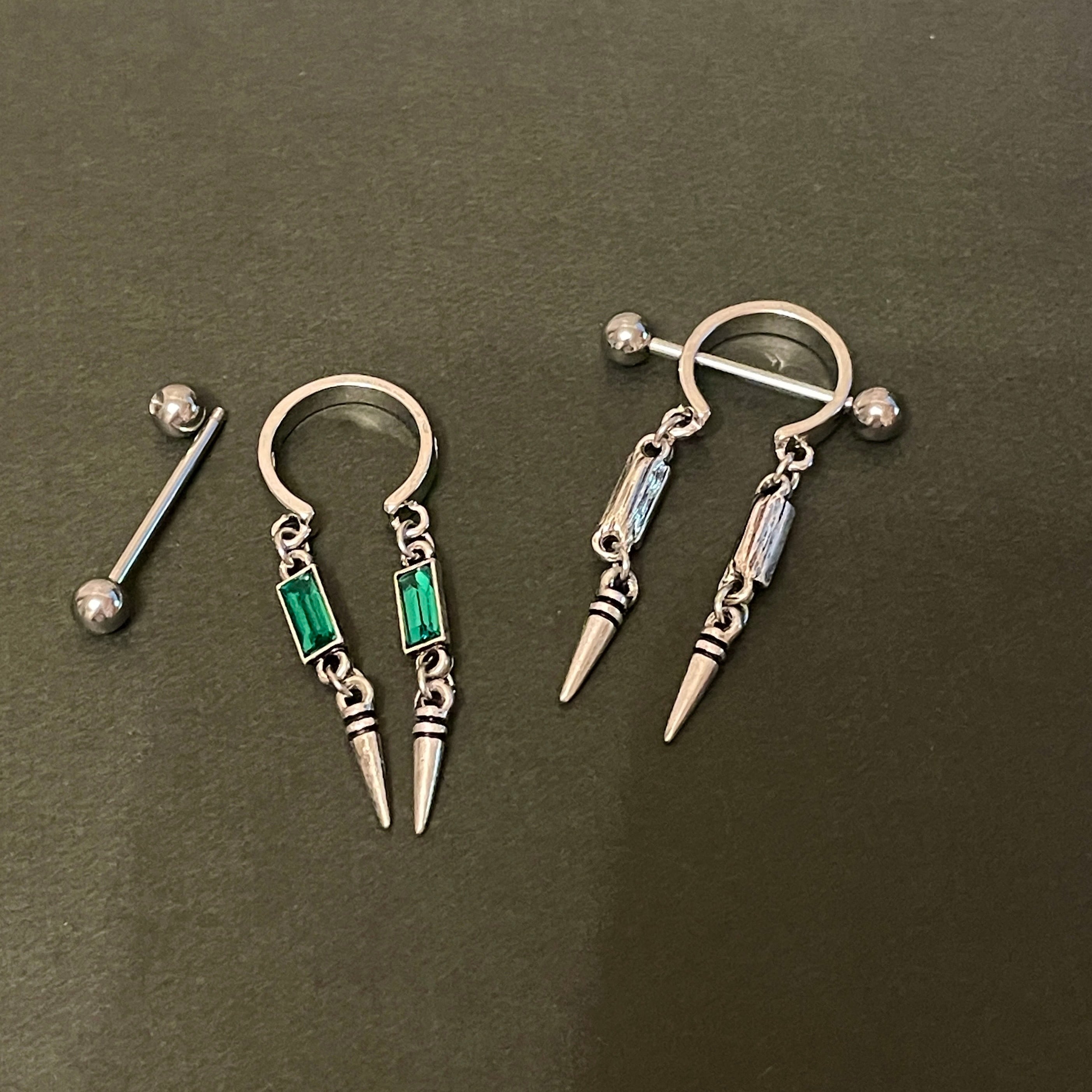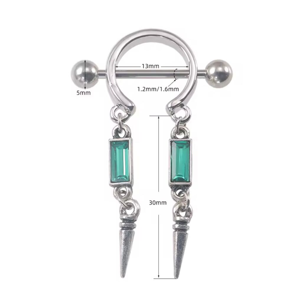 285:ニップルピアス ボディピアス 14G 14ゲージ 可愛い フェミニン セクシー 乳首ピアス ゆらゆら 揺れる ピアス 緑 グリーン 可愛い