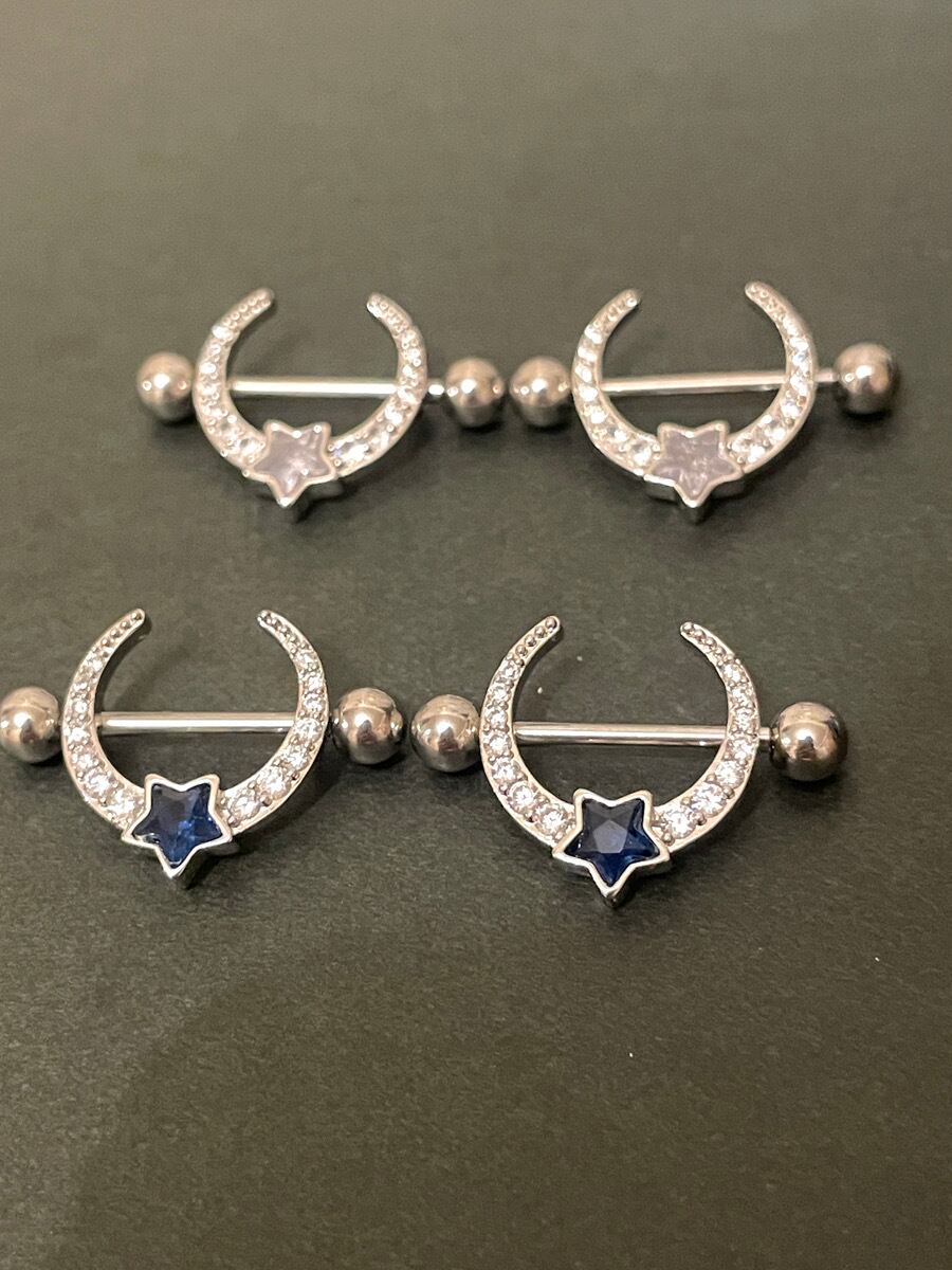 286:ニップルピアス 月 星 ムーン スター きらきら クリア 白 ブルー 青 ボディピアス 14G 14ゲージ 可愛い フェミニン セクシー 乳首ピアス 可愛い
