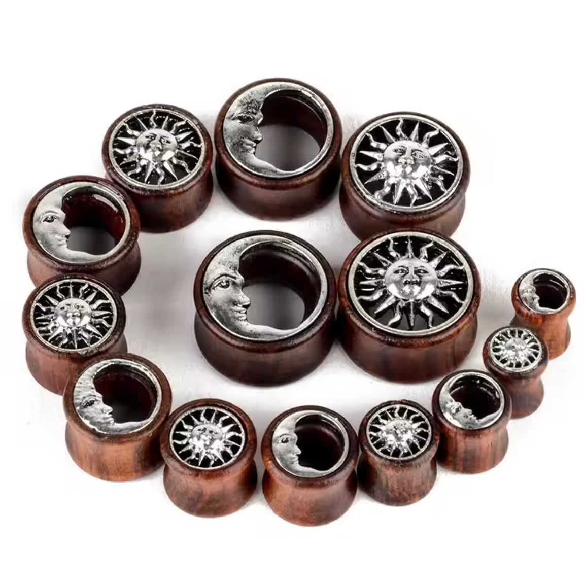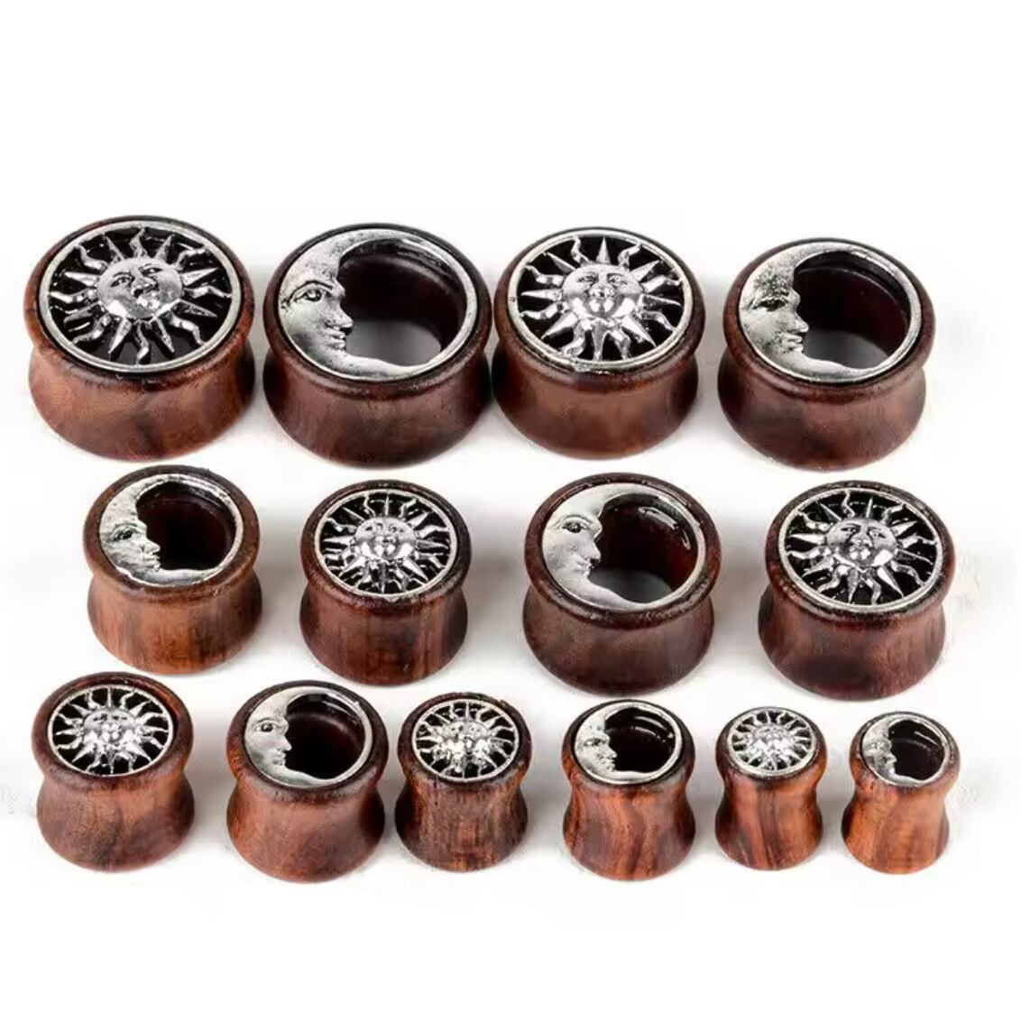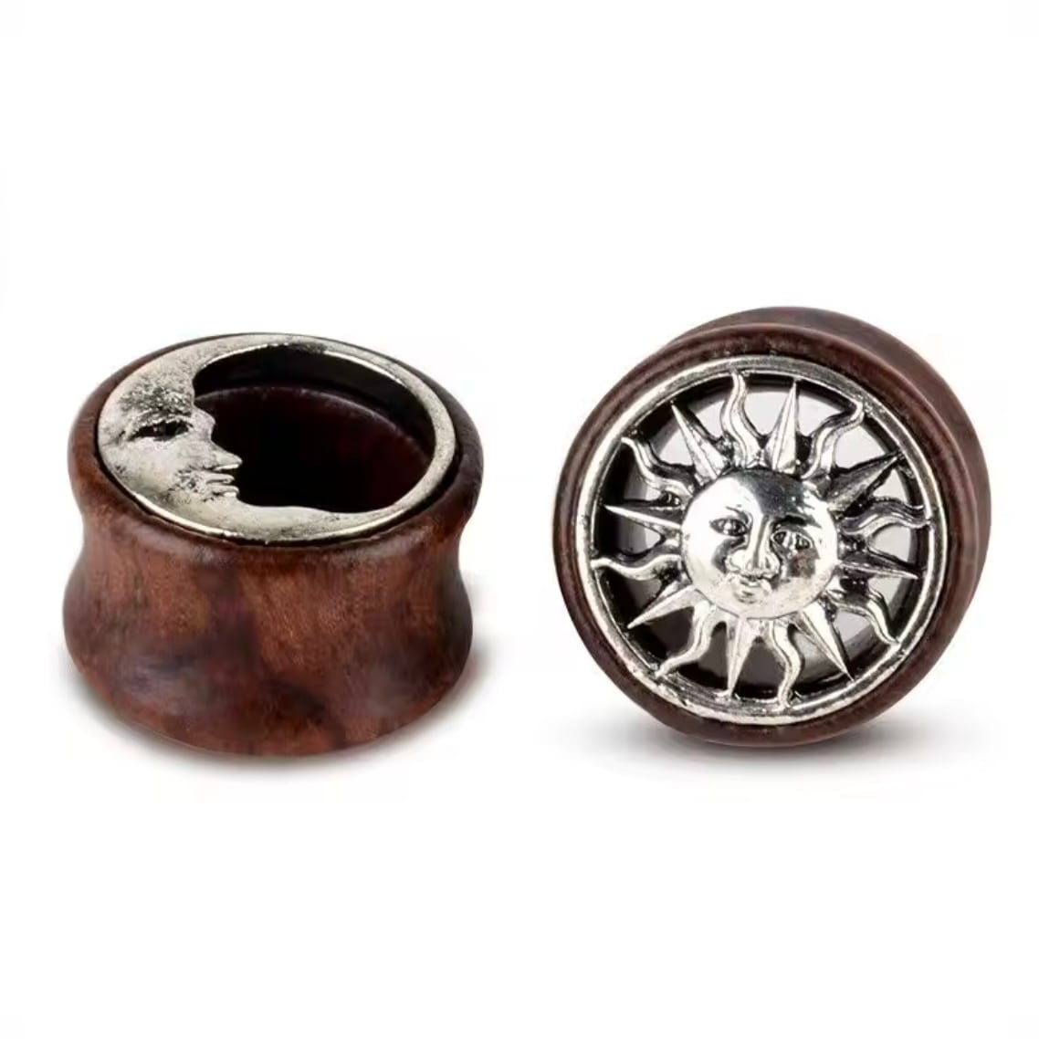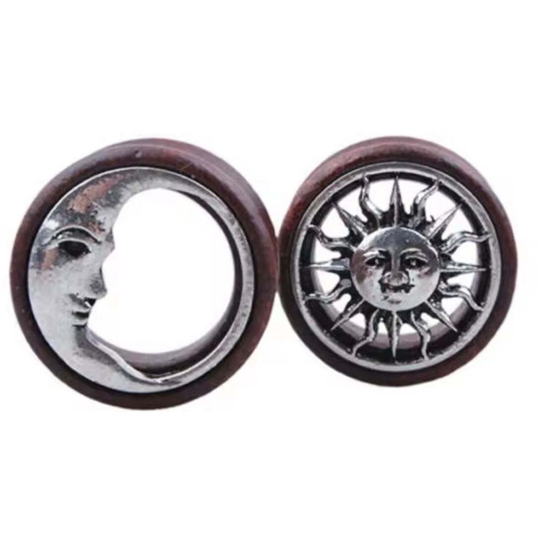 288:2個セット ボディピアス ホールピアス ダブルフレア 太陽 月 ムーン サン 大きいサイズ 8mm 10mm 12mm 14mm 16mm