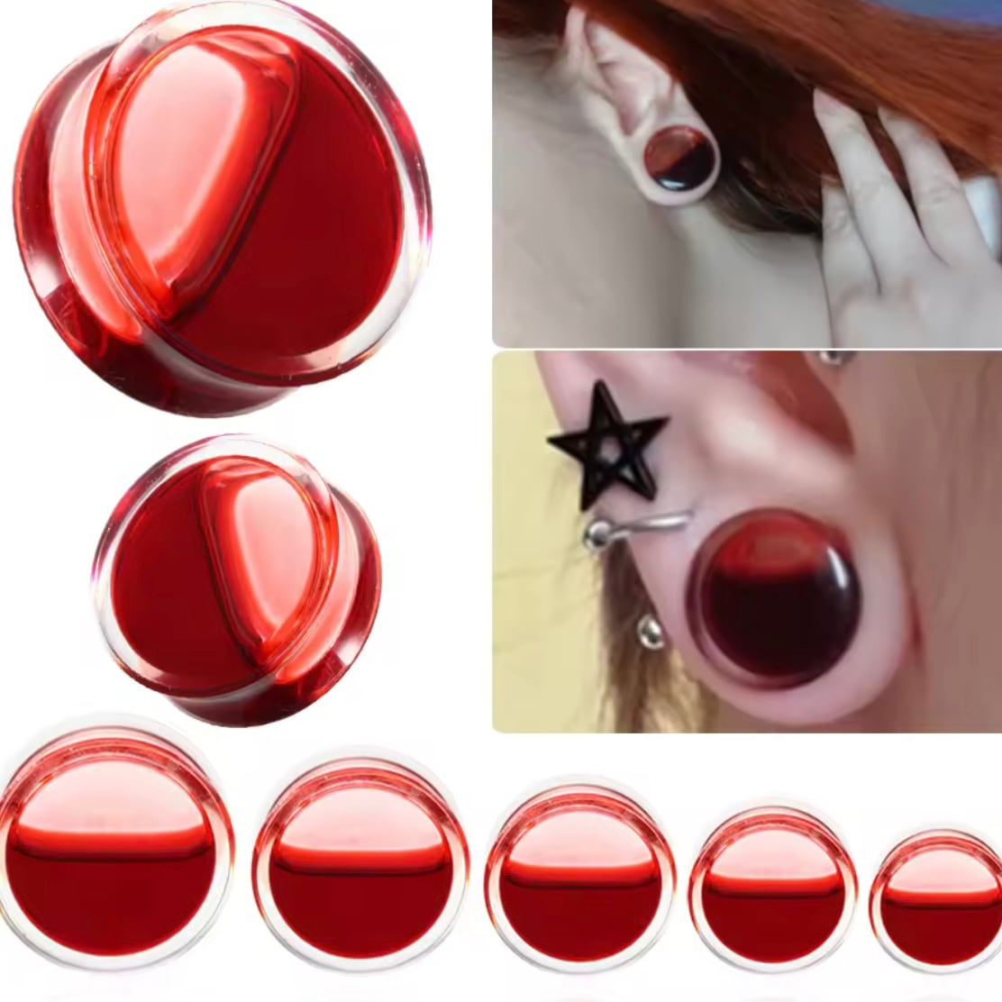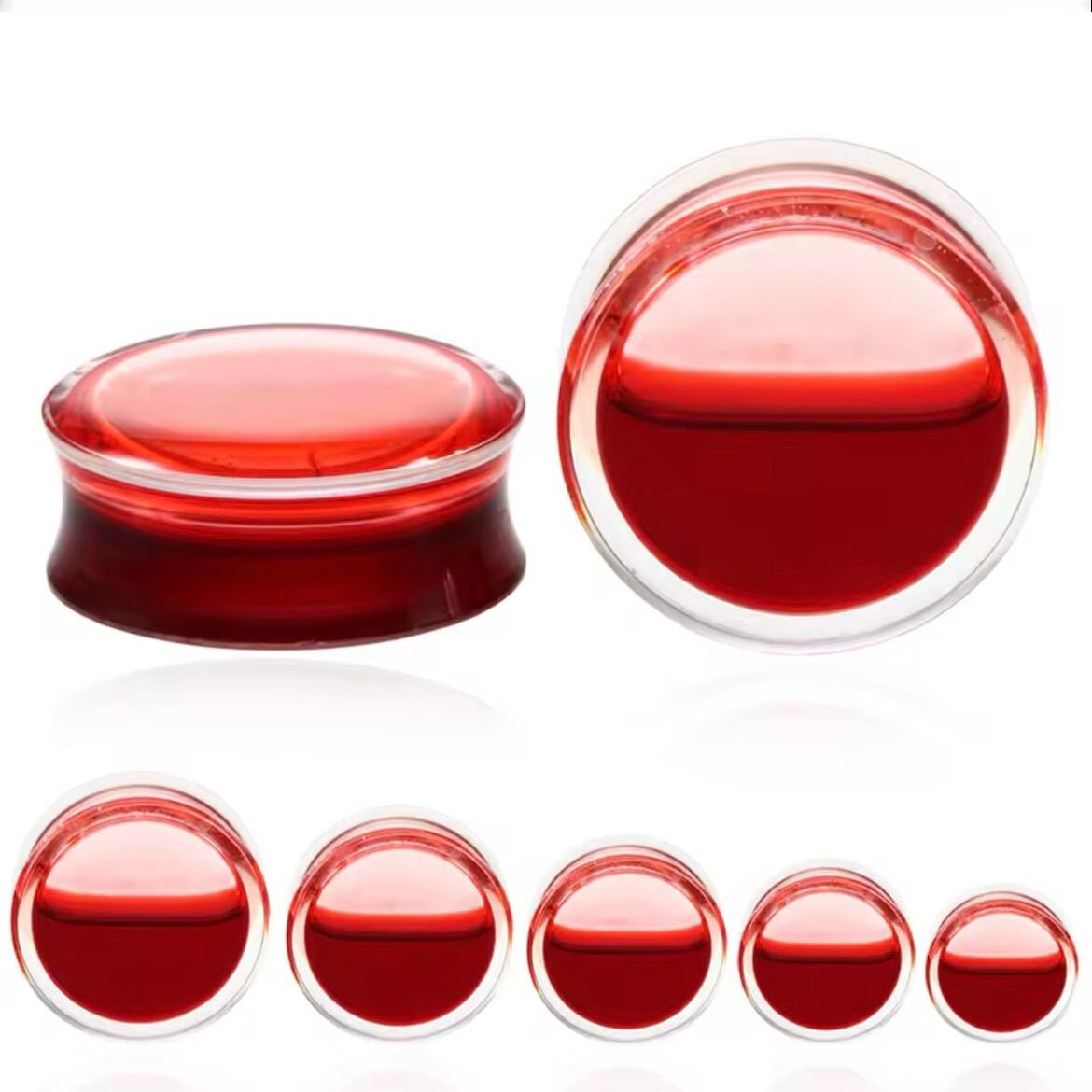 292:ボディピアス プラグ アクリル 血液 赤 レッド 液体 不気味 ハロウィン 可愛い 大きいサイズ 拡張 8mm 10mm 12mm 14mm16mm 18mm 20mm 22mm 25mm