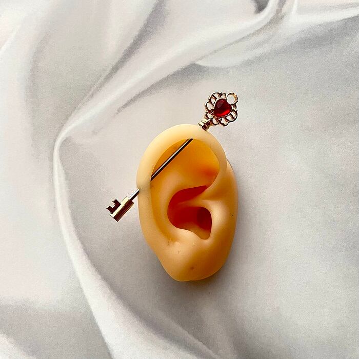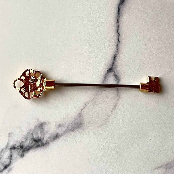 36:インダストリアル 【鍵】 ボディピアス 鍵 インダス ストレートバーベル ロングバーベル ゴージャス 可愛い ボディピ 14G 赤