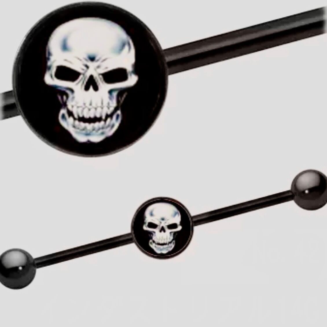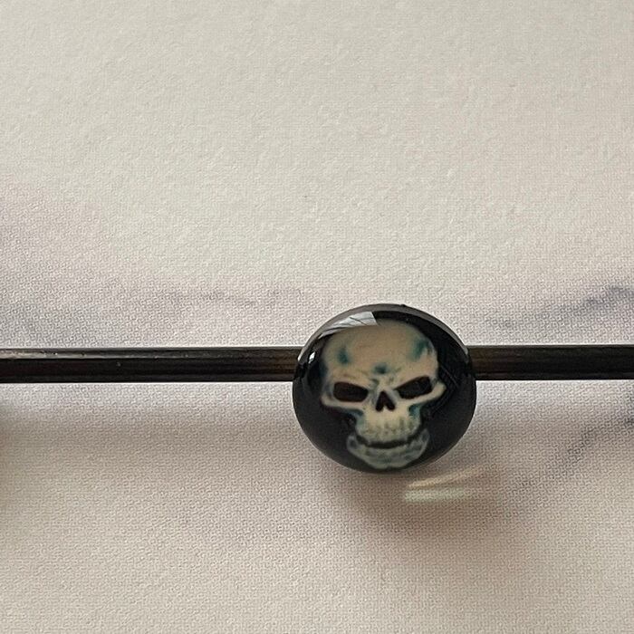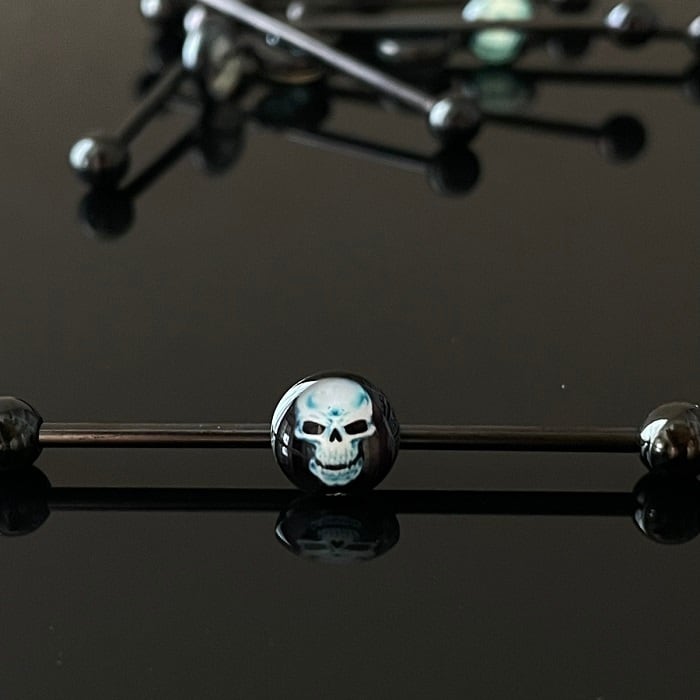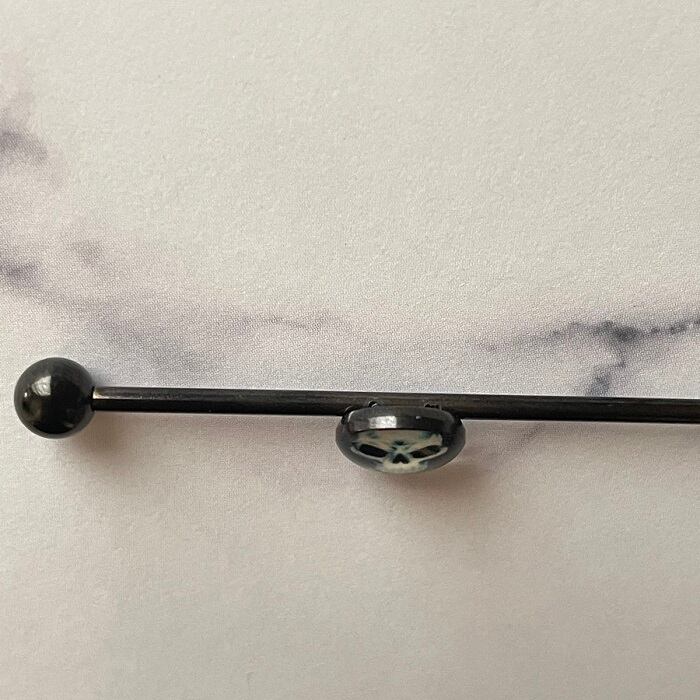 42:インダストリアル 【ガイコツ】 ボディピアス ストレートバーベル ロングバーベル スカル 骸骨 ドクロ 14G