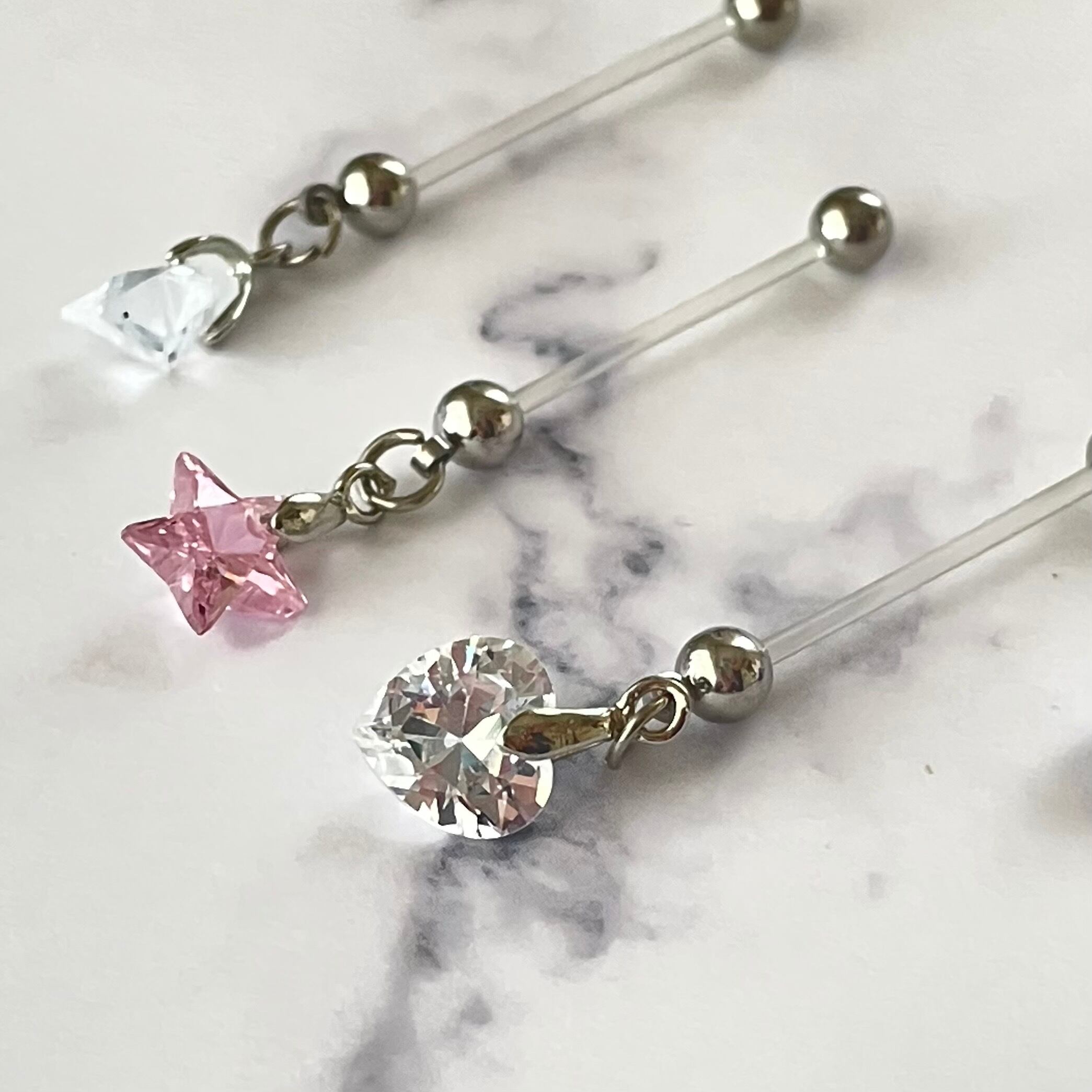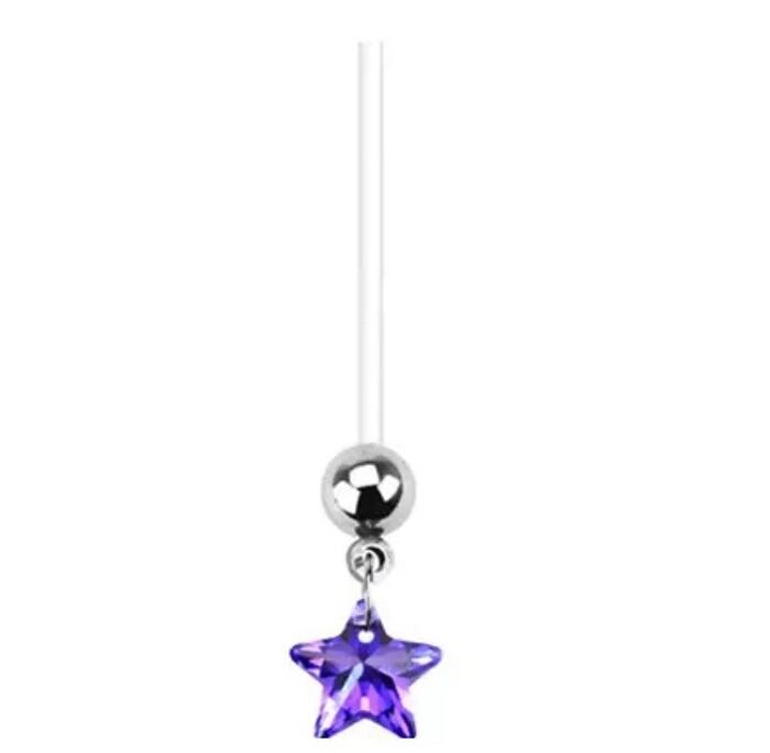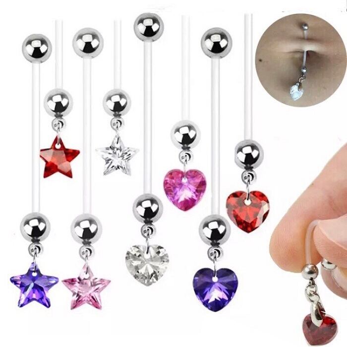 55:へそピアス 【マタニティ】 ボディピアス マタニティへそピアス モチーフ付 チャーム ジルコン ハート 星 スター キラキラ 妊娠中 ピアス 赤 ピンク 紫 クリア
