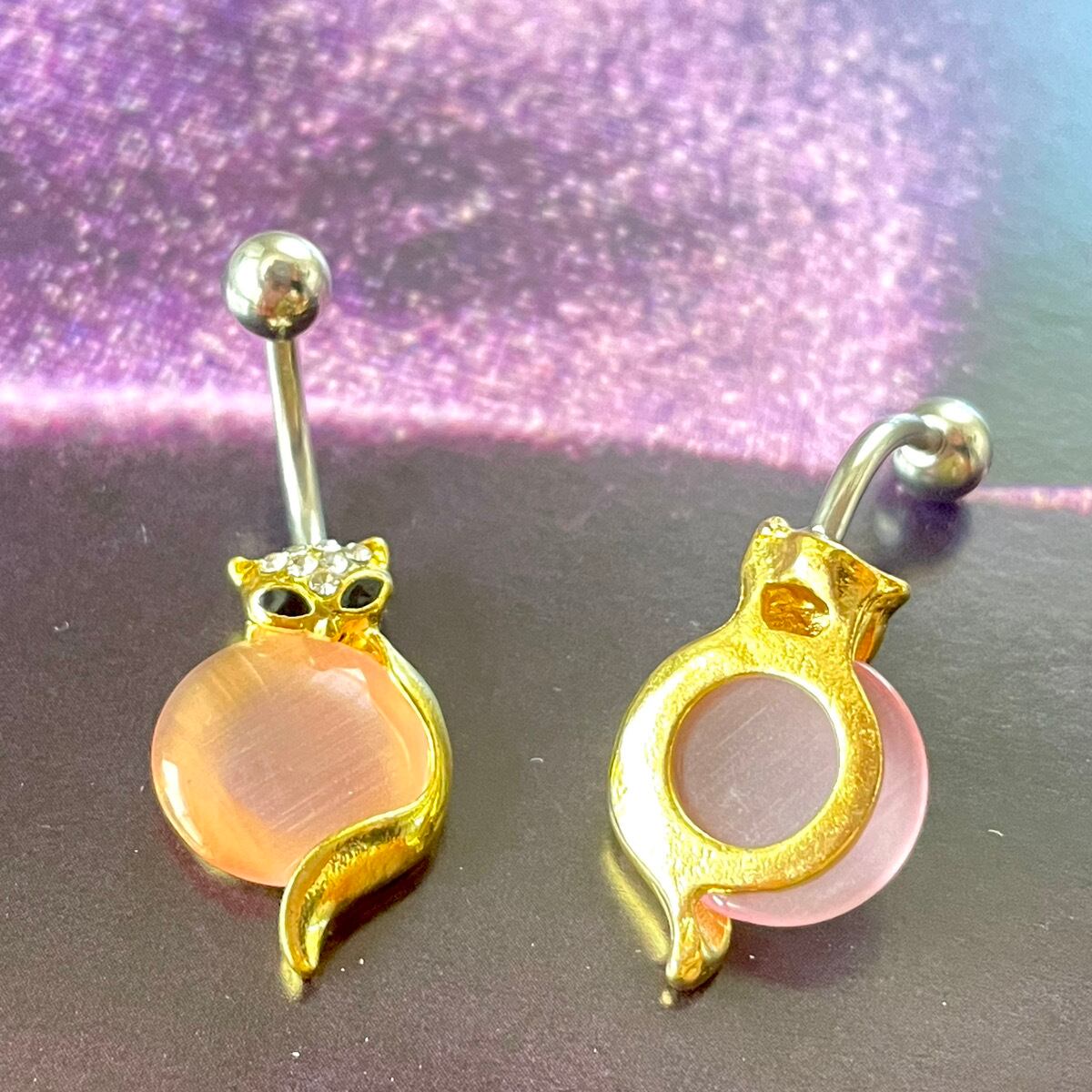 104:へそピアス 【きつね】 14G アニマル FOX フォックス ボディピアス バナナバーベル カーブバーベル