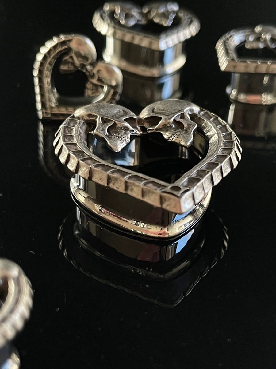 137:トンネル スカル ハートスカルハート 骨 ダブルフレア ハイゲージ ボディピアス トンネル ドクロ 骸骨 ゴツめピアス