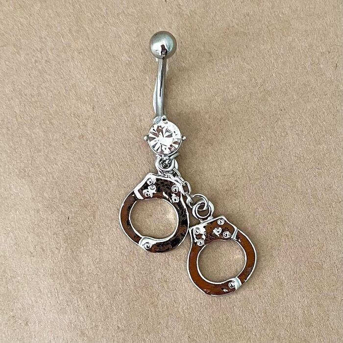 171:へそピアス 手錠 14G ボディピアス バナナバーベル ジルコン ストーン ゆらゆら カーブバーベル 金属アレルギー対応 ステンレス