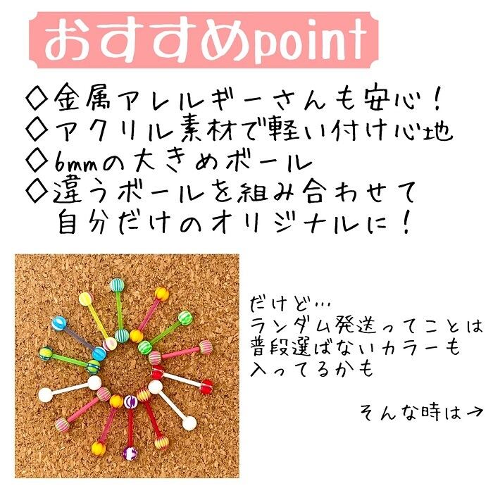 カラフルでカワイイ6mmボールが目をひくボディピアス