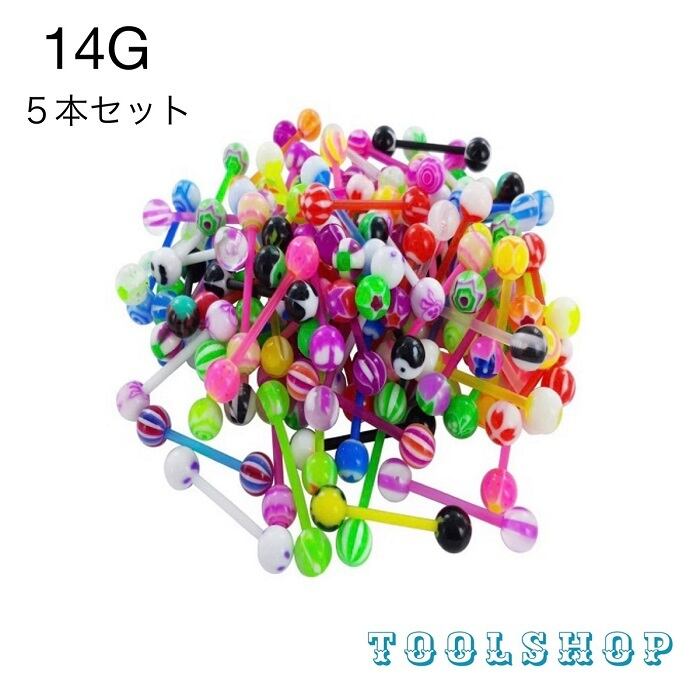 01:ストレートバーベル 【アクリル5本セット】 ボディピアス 14ゲージ 14G 5本セット カラフル 軽い 可愛い メンズ レディース ユニセックス