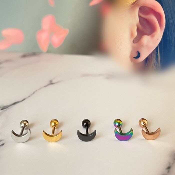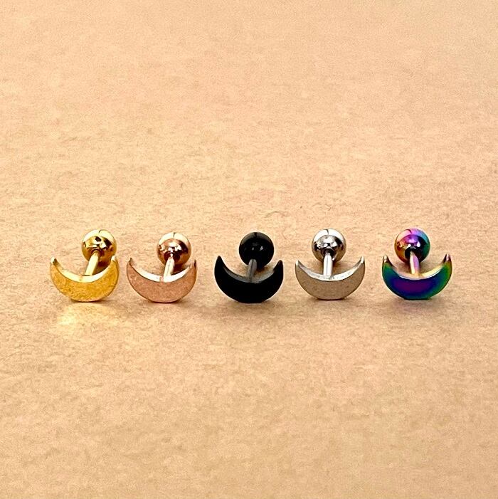 18:ストレートバーベル 【月】 ボディピアス 宇宙 空 ムーン ステンレス 18G シンプル 可愛い