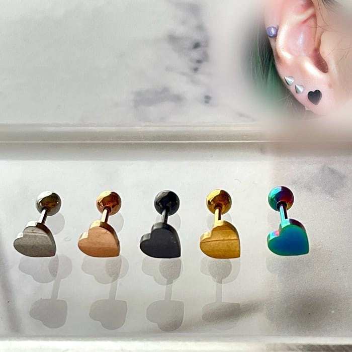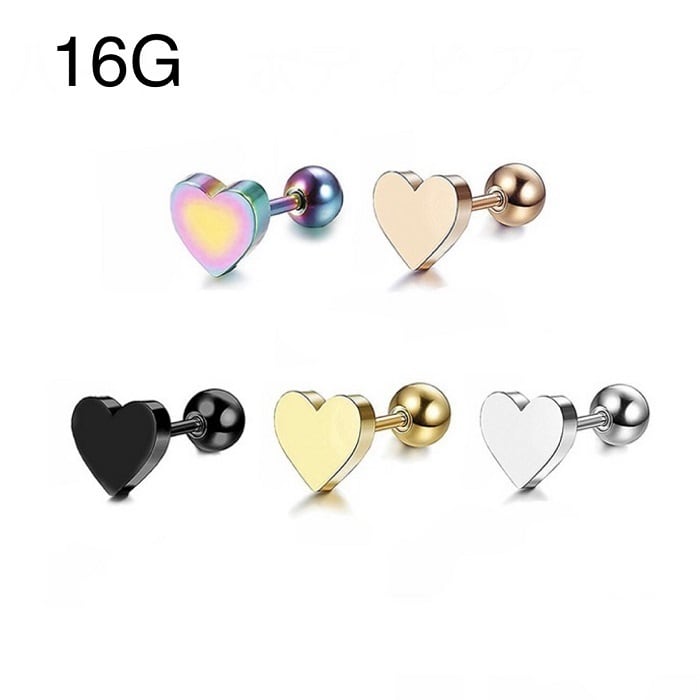 25:ストレートバーベル 【ハート】 ボディピアス 軟骨 ヘリックス 耳たぶ イヤーロブ ハートピアス 16G レディース 可愛い フェミニン