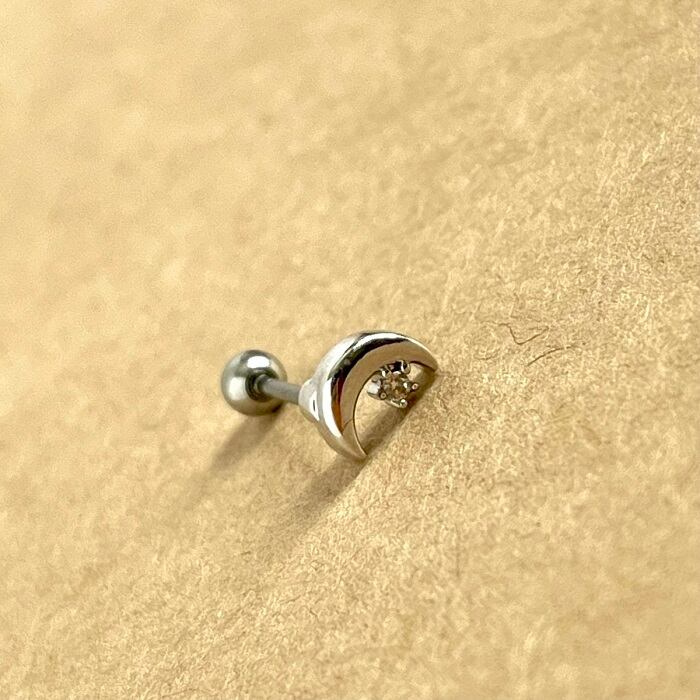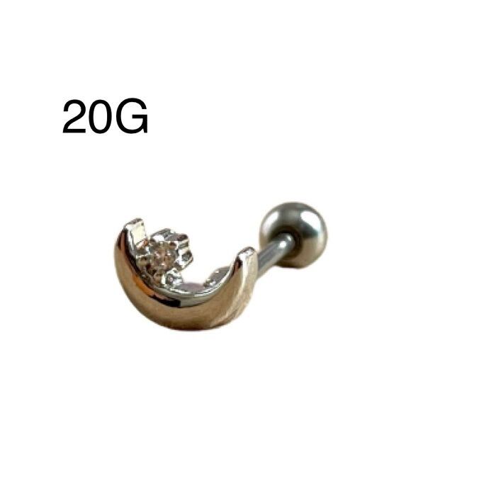 28:ストレートバーベル 【月ジルコン】 ボディピアス 月 ムーン ジルコン 軟骨ピアス イヤーロブ 20G 可愛い フェミニン レディース