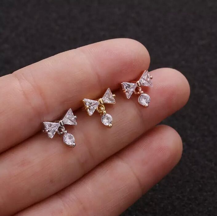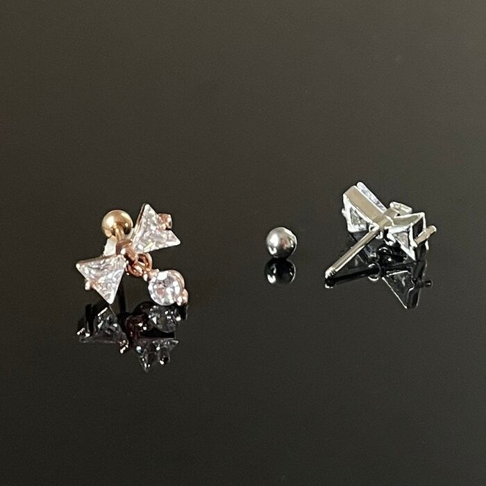 30:ストレートバーベル 【リボン】 ボディピアス ストーン ジルコンピアス 揺れるピアス 20G リボンピアス フェミニン レディース 可愛い 綺麗
