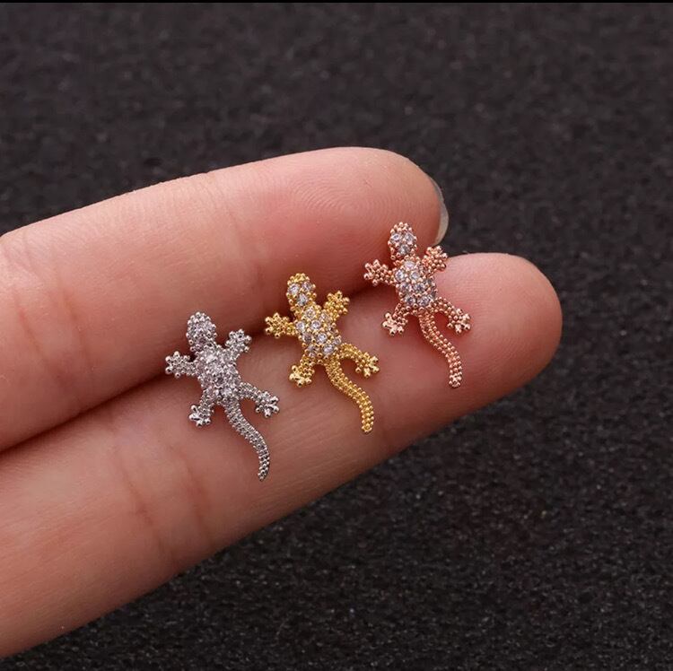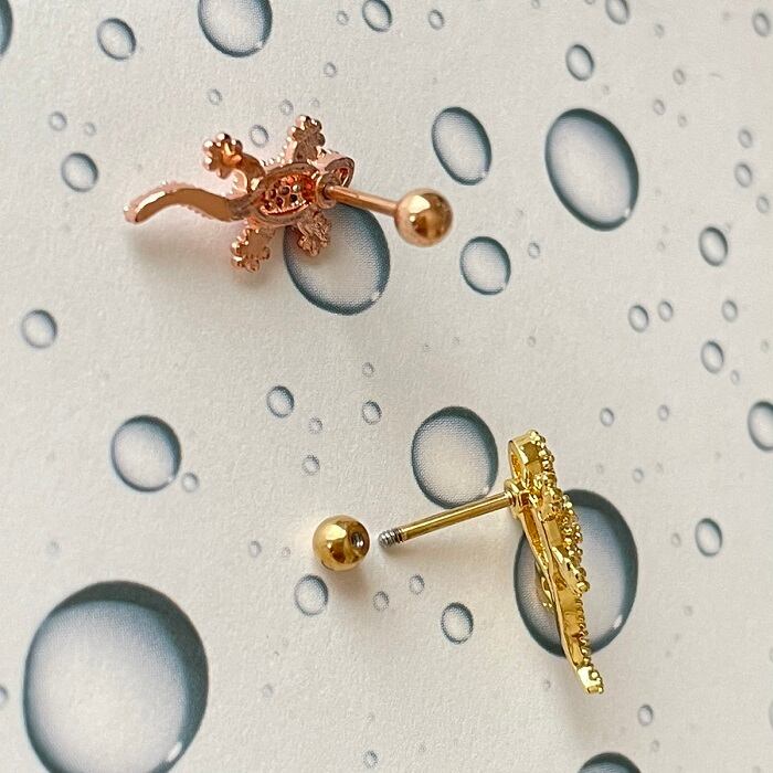 52:ストレートバーベル 【イモリ】 ボディピアス いもり 蜥蜴 トカゲ 爬虫類 軟骨 ヘリックス 20G イヤーロブ 耳たぶ 軟骨 ボディピ