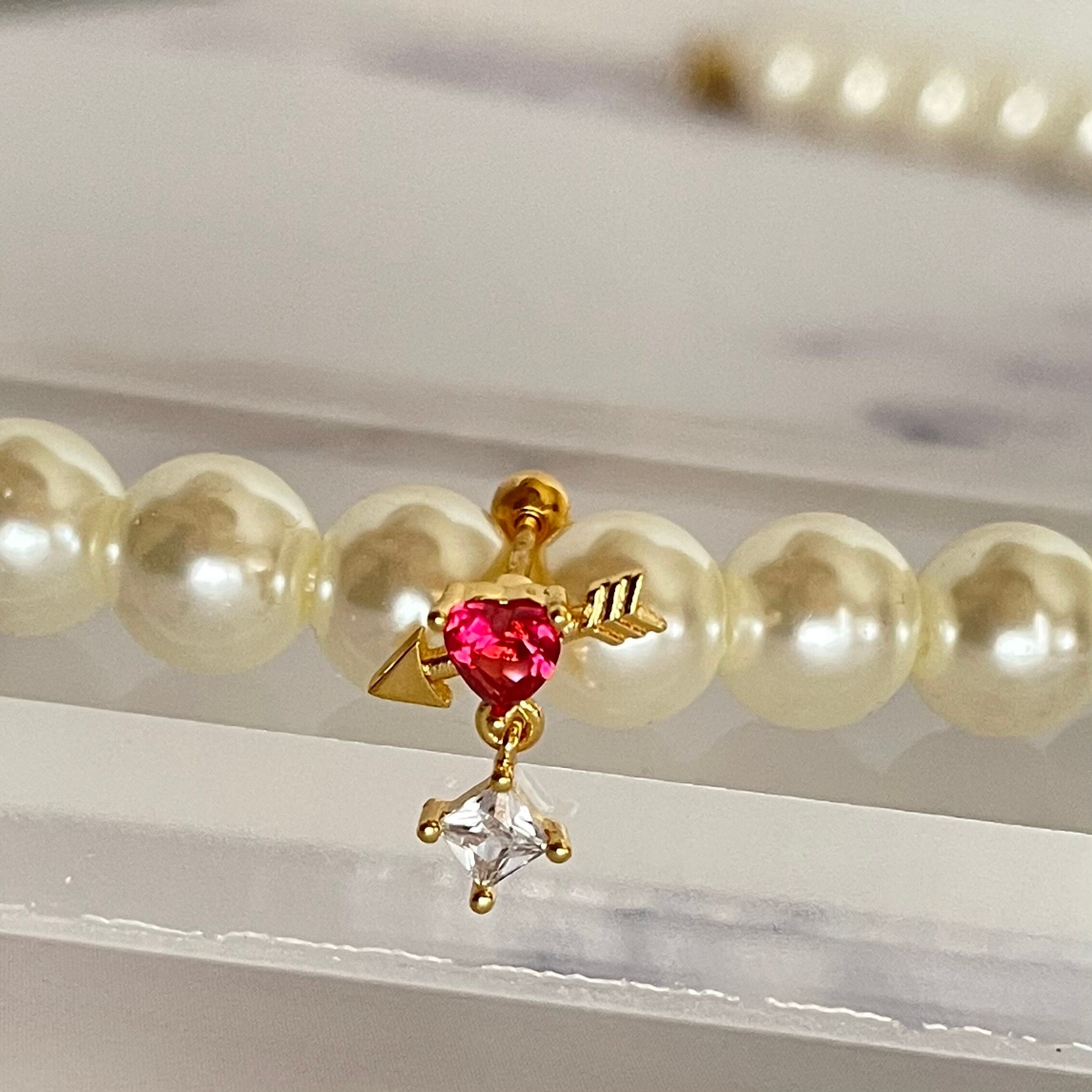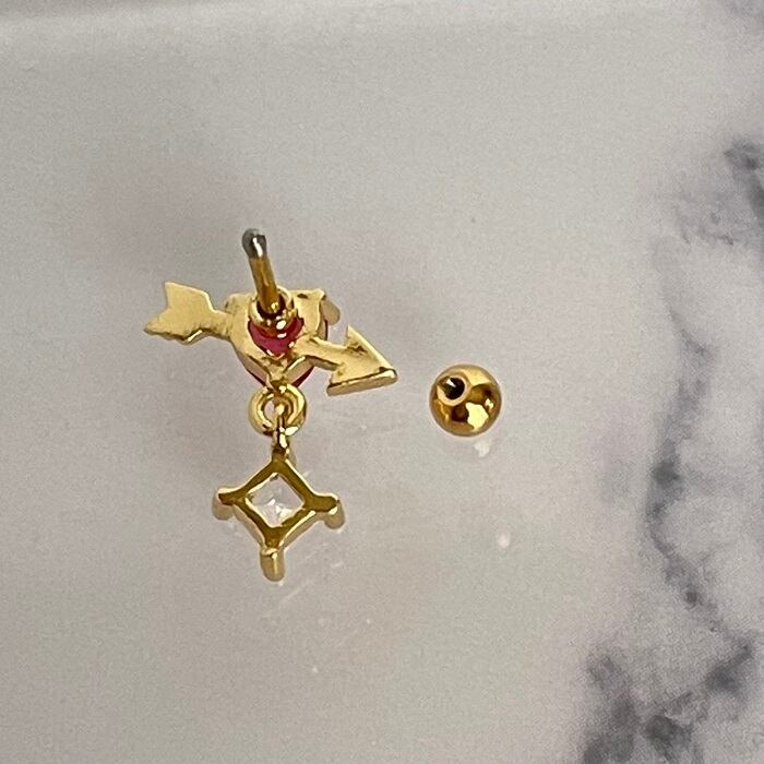 61:ストレートバーベル 【ハートアロー】 ボディピアス ハート アロー ゴールド ピンク ジルコン 矢 20G 軟骨 ヘリックス イヤーロブ 耳たぶ ピアス カワイイ フェミニン ゆらゆら 揺れるピアス