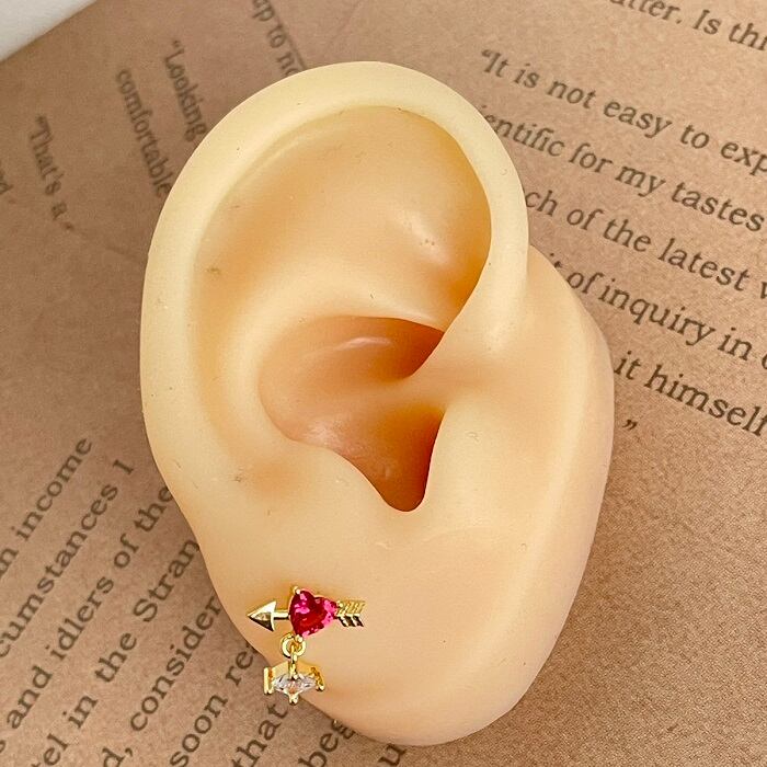 激安 ハート 矢 赤 ゴールド ピアス ゆらゆら