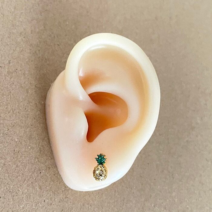 65:ストレートバーベル 【パイナップル】 ボディピアス 20G 果物 フルーツ 黄色 ゴールド ピアス ストレートバーベル