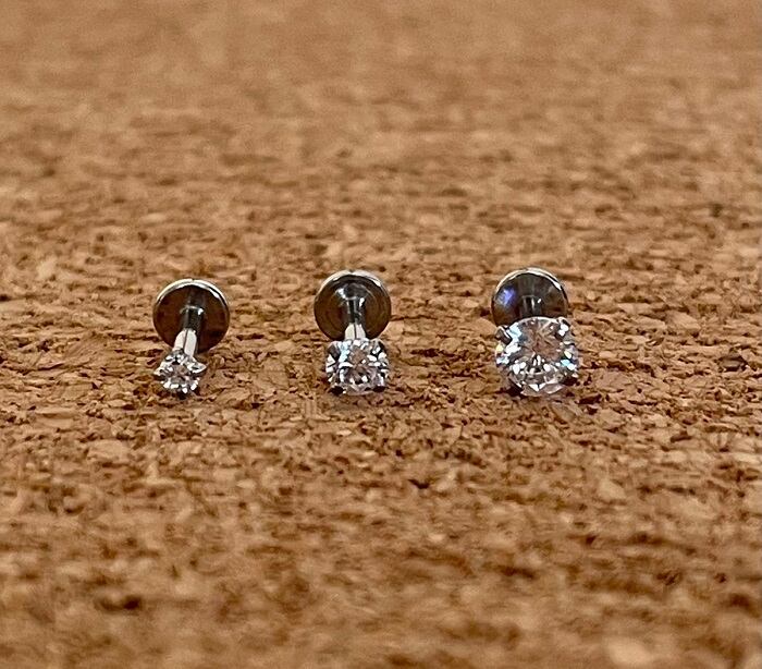 94:ラブレットスタッド 【小粒ジルコン】 ボディピアス ジルコン 小粒 スタッドピアス 16G クリア オーロラ 2本セット 2mm 3mm 4mm