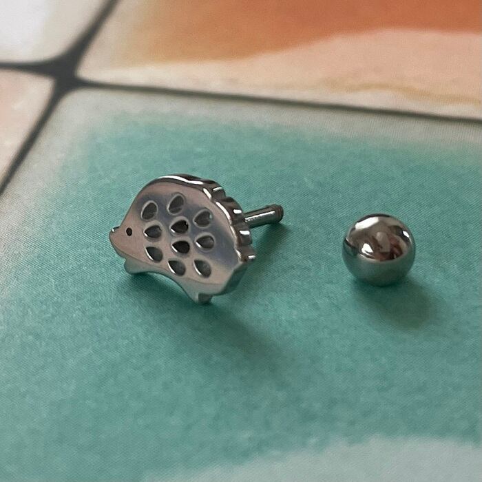 100:ストレートバーベル 【はりねずみ】 ボディピアス ハリネズミ ボディピ アニマル 軟骨 ヘリックス イヤーロブ 耳たぶ シルバー 18G