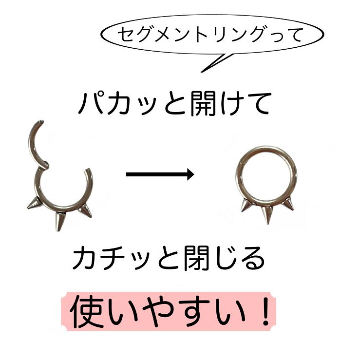 セグメントリングはパッカっと開いて装着するのでピアスパーツがなくなりません